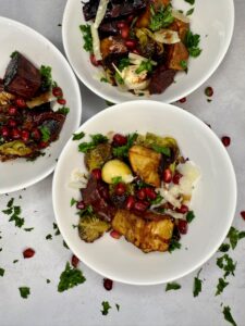 What to eat with the Balsamic Glazed Sweet Potato and Brussels Sprouts Medley: